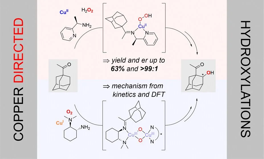 44) Petrillo, A., Kirchgeßner-Prado, F. K., Hiller, D., Eisenlohr, A. K., Rubin, G., Würtele, C., Goldberg, R., Schatz, D., Holthausen. C. M., Garcia-Bosch, I., Schindler, S. Expanding the Clip-and-Cleave Concept: Approaching Enantioselective C–H Hydroxylations by Copper Imine Complexes Using O2 and H2O2 as Oxidants. J. Am. Chem. Soc. 2024. DOI: 10.1021/jacs.4c07777