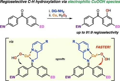 42) Zhang, S.; Goswami, S.; Schulz, K. H. G.; Gill, K.; Yin, X.; Hwang, J.; Wiese, J.; Jaffer, I.; Gil, R. R.; Garcia-Bosch, I. Regioselective Hydroxylation of Unsymmetrical Ketones Using Cu, H2O2, and Imine Directing Groups via Formation of an Electrophilic Cupric Hydroperoxide Core. J. Org. Chem. 2024, 89, 4, 2622–2636. DOI: 10.1021/acs.joc.3c02647