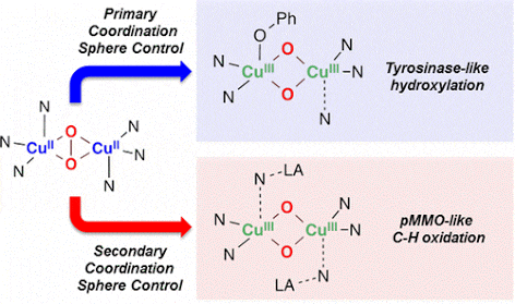27) Garcia-Bosch, I.*, Cowley, R. E.; Díaz, D. E.: Peterson, R. L.: Solomon, E. I.*; and Karlin, K. D.* “Substrate and Lewis Acid Coordination Promote O–O Bond Cleavage of an Unreactive L2CuII2(O22–) Species to Form L2CuIII2(O)2 Cores with Enhanced Oxidative Reactivity.” J. Am. Chem. Soc., 2017, 139, 3186. Note: I.G.-B. affiliated with SMU. DOI: 10.1021/jacs.6b12990