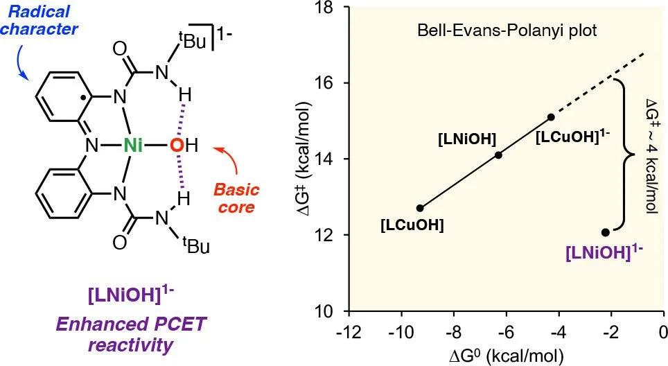 45) Ye, D.; Wu, T.; Puri, A.; Hebert, D. D.; Siegler, M. A.; Hendrich, M. P.; Swart, M.; Garcia-Bosch, I. Enhanced Proton-Coupled Electron-Transfer Reactivity by a Mononuclear Nickel(II) Hydroxide Radical Complex. Inorg. Chem., 2024, 63, 52, 24453–24465. DOI: 10.1021/acs.inorgchem.4c03370