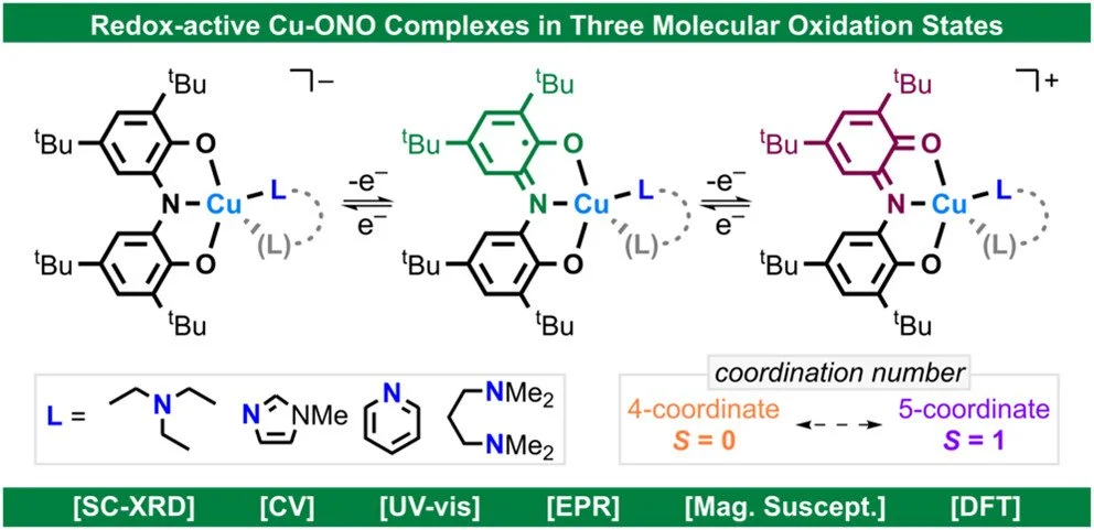 47) Hebert, D. D.; Puri, A.; Ye, D.; McAninch, A.; Chisholm, A.; Siegler, M. A.; Swart, M.; Garcia-Bosch, I. Synthesis and Characterization of Copper Complexes Featuring a Redox-Active ONO Ligand in Three Molecular Oxidation States. Inorg. Chem., 2025. DOI: 10.1021/acs.inorgchem.4c03370
